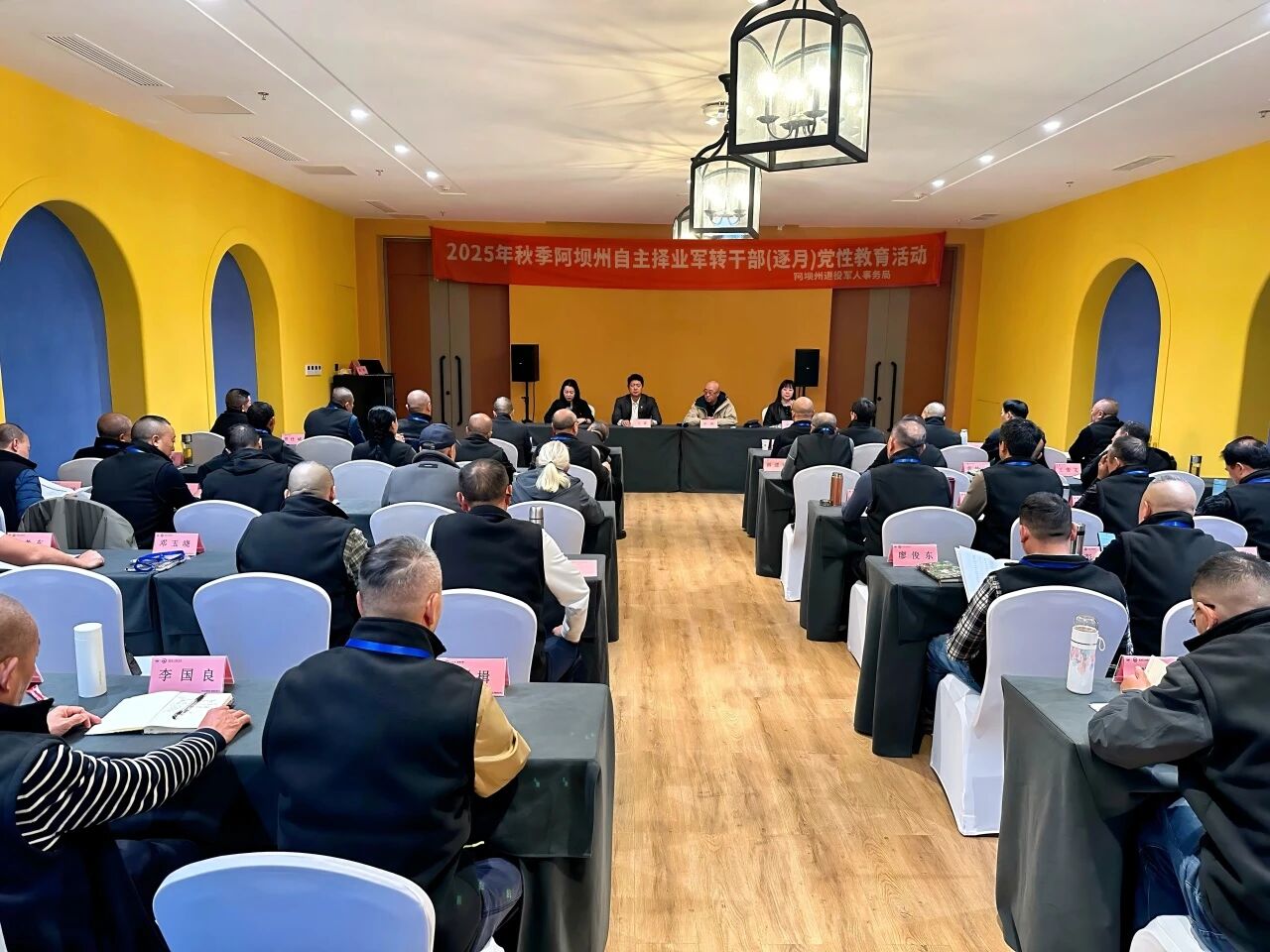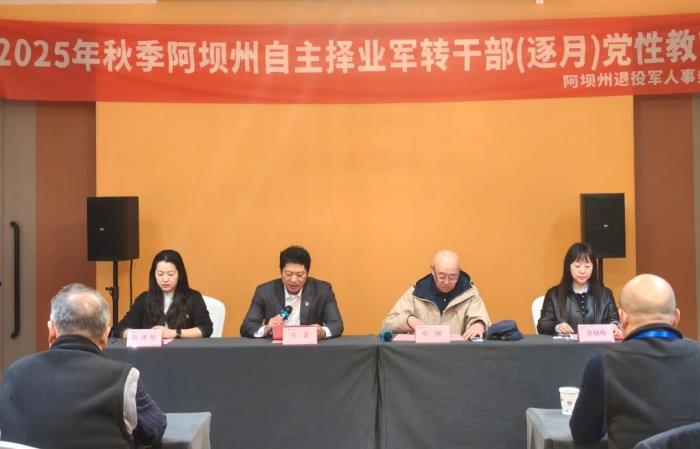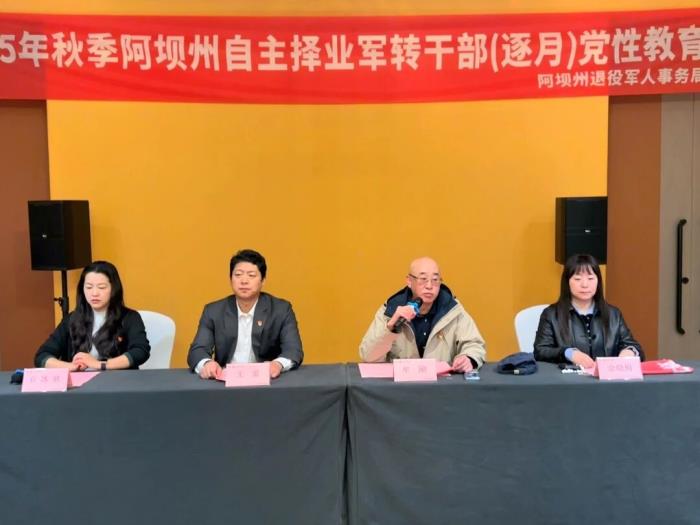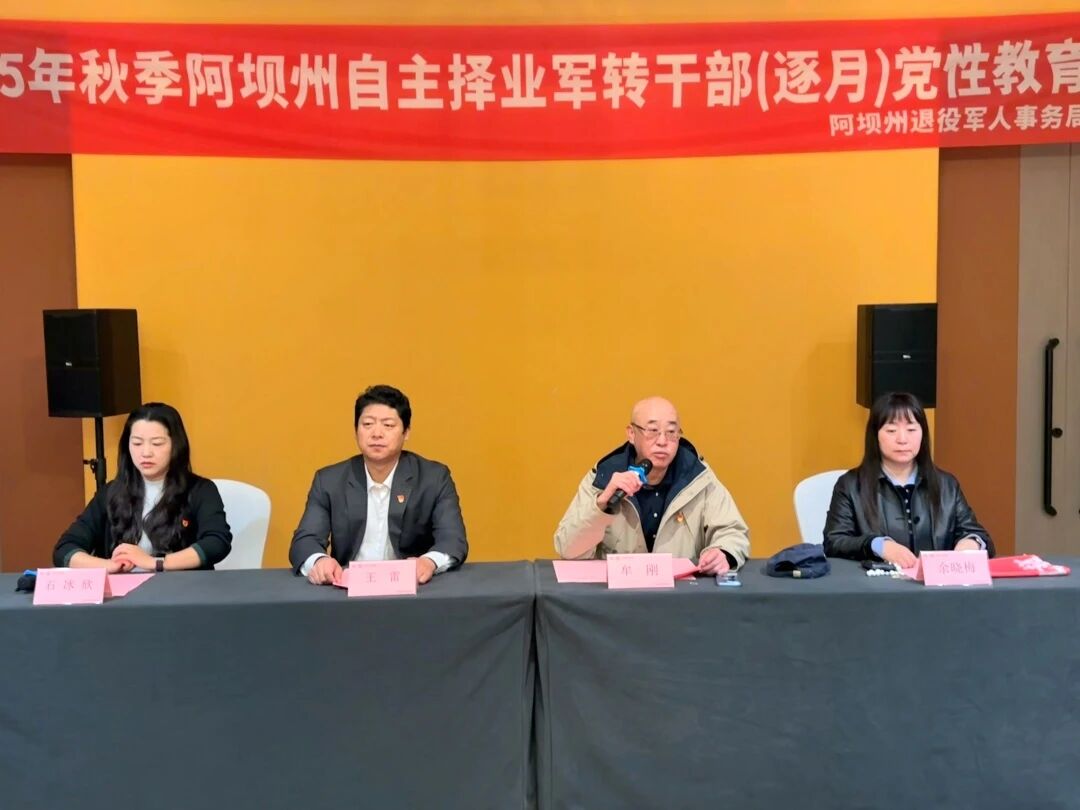 阿坝州退役军人事务局三级调研员牟刚在开班动员讲话中指出,自主择业军转干部和逐月领取退役金的退役军人是党和国家的宝贵财富,他们身上传承着军人的使命担当,是推动社会发展的重要力量。并强调,本次党性教育活动意义深远,旨在引导学员进一步坚定理想信念、强化党性锻炼,增进彼此间的团结合作,共同探索创新发展新路径。牟刚调研员详细介绍了活动具体内容,包括相关精神与政策的专题解读、业内专家的专业授课、实地考察学习等丰富环节。同时,对活动期间的组织保障和纪律要求作出明确强调,希望全体学员珍惜难得的学习机遇,全身心投入培训,真正做到学有所思、学有所悟、学有所获,在各自岗位上持续发光发热,为社会发展贡献更大力量。