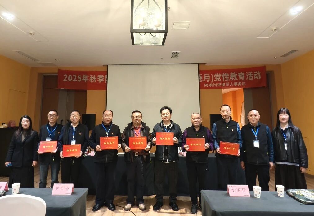 最后,全体参会人员合影留念,将这一难忘的时刻定格。至此,2025年秋季阿坝州自主择业军转干部(逐月)党性教育活动圆满落下帷幕。通过此次活动,学员们进一步坚定了理想信念,提升了党性觉悟,为今后更好地投身各项事业奠定了坚实的思想基础。